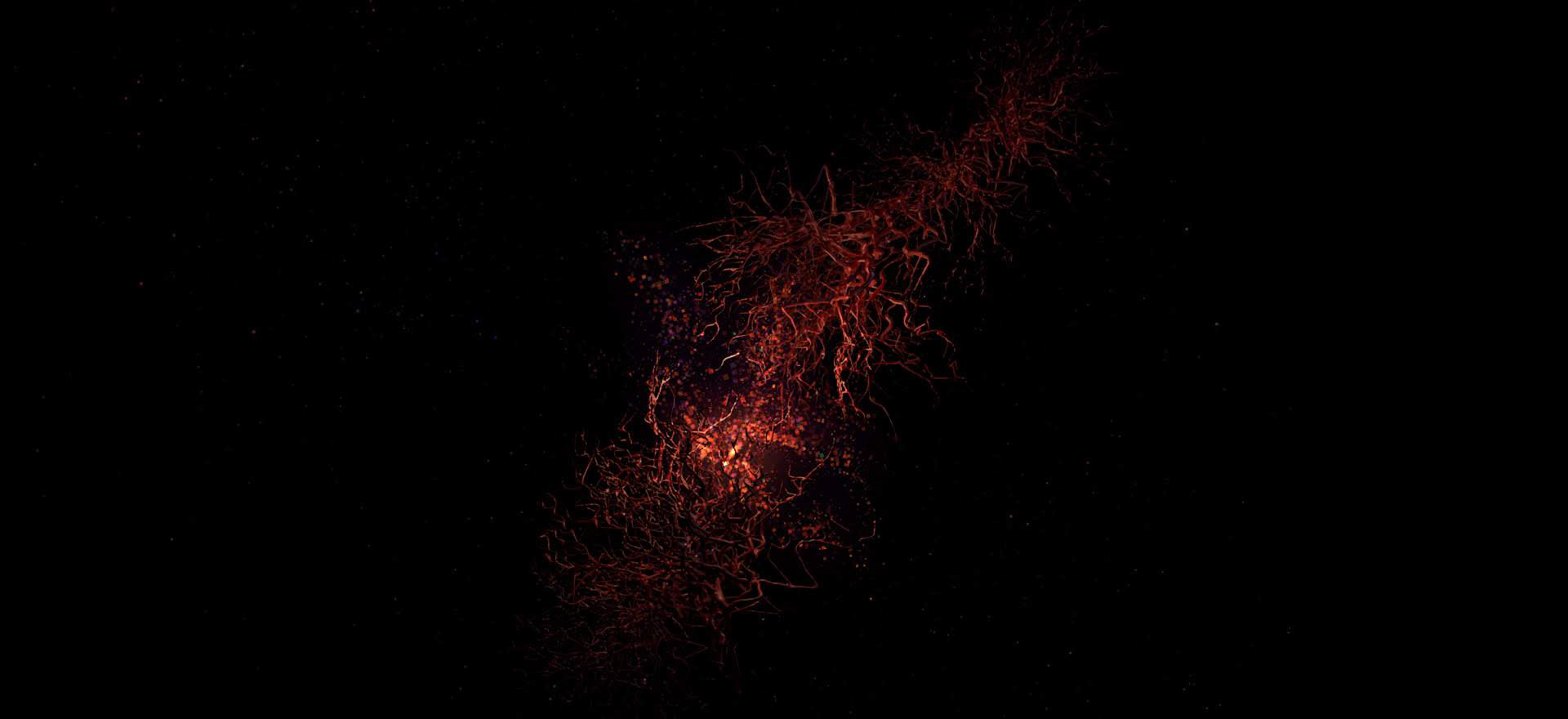 “Ancestors is a visual cosmic journey of death traveling through space. Through alien coral reef and dendritic mirror ribbons, death’s journey through space reveals the beauty of this universe. The music’s rushing energy leads to a sonic wormhole odyssey, ending with the visualization that we all arise from one source."